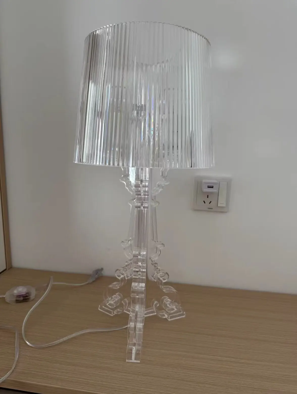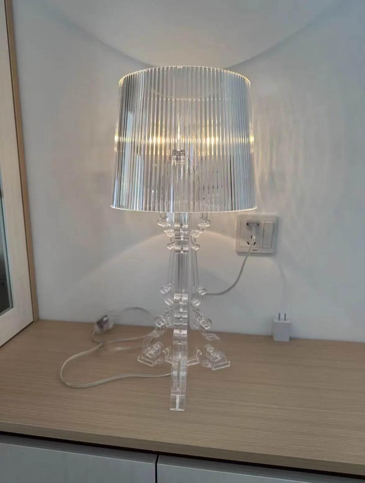 Bring a regal and sophisticated ambiance to your space with the Baroque White Bedside Lamp . Inspired by the Baroque style, this lamp is distinguished by its ornate design and curved lines that evoke the splendor and elegance of palaces of yesteryear. Made from high-quality materials such as acrylic and ABS, it combines robustness and lightness, while offering a subtle transparency that diffuses light softly.